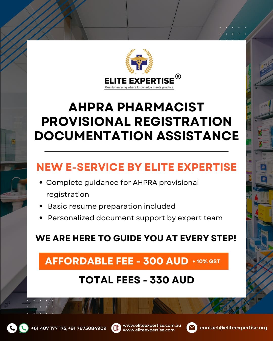 New e-service by Elite Expertise. We provide step-by-step guidance so your AHPRA provisional registration is accurate, complete, and on time.