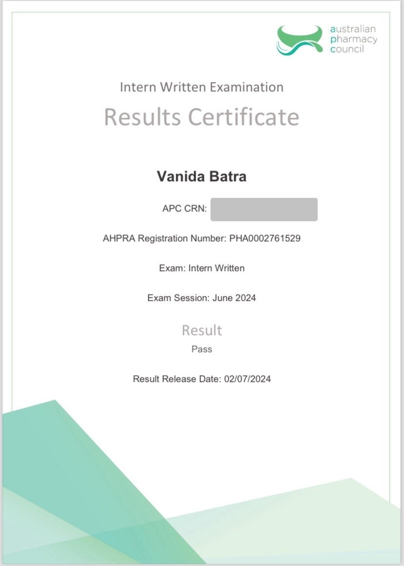 100% Pass rate in Australian Intern Pharmacist Exam
